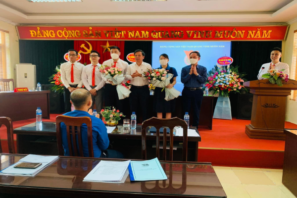 Ảnh: Đồng chí Hoàng Trung Kiên, Giám đốc Sở, đồng chí Bùi Xuân Tiến, Phó chủ tịch Công đoàn tặng hoa chúc mừng BCH Chi Đoàn Sở nhiệm kỳ 2022-2024