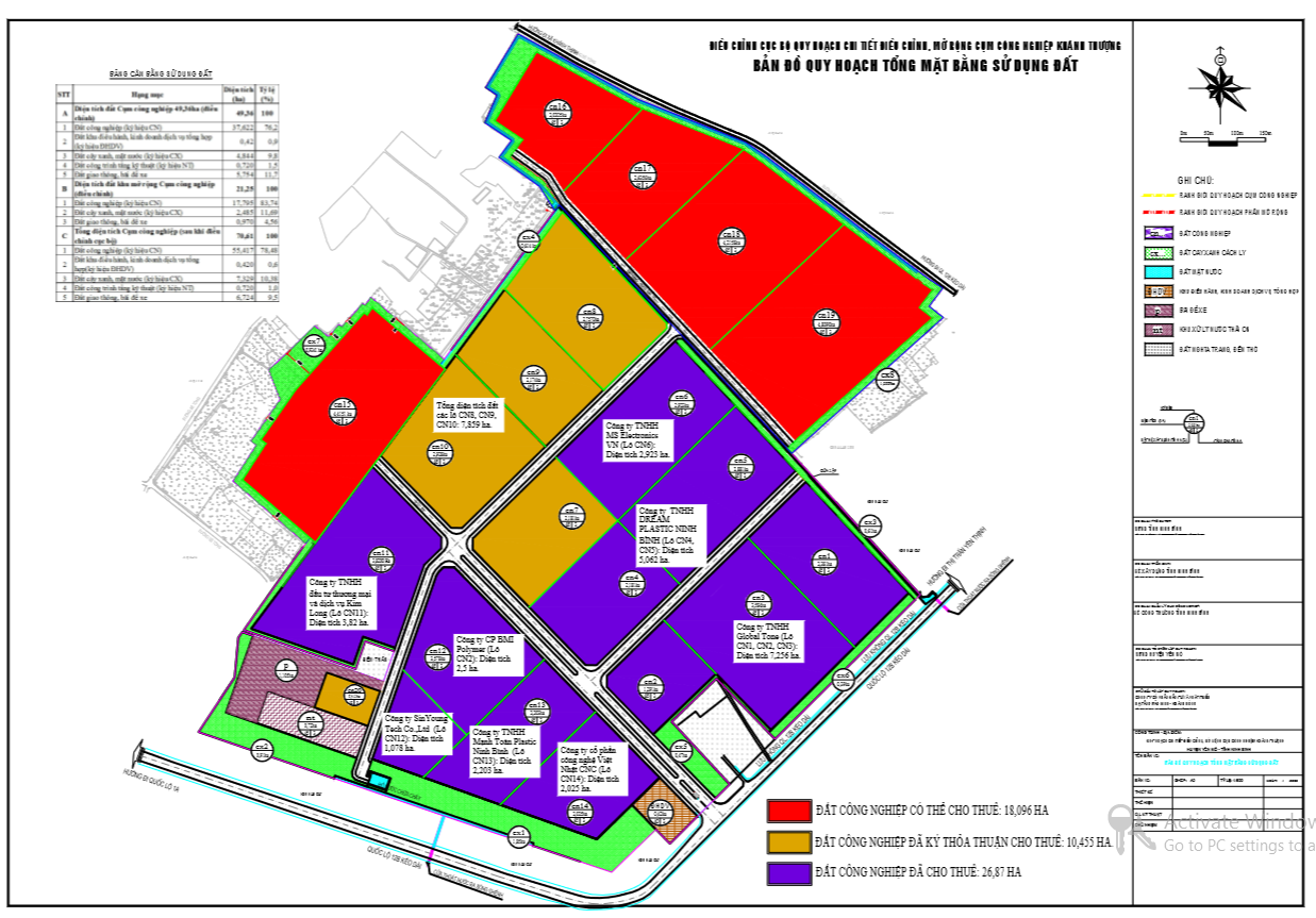 | 3 | Quy hoạch sử dụng đất | Diện tích đã được bổ sung vào quy hoạch sử dụng đất điều chỉnh trong giai đoạn tới; Diện tích đất có thể cho thuê 50 ha. |