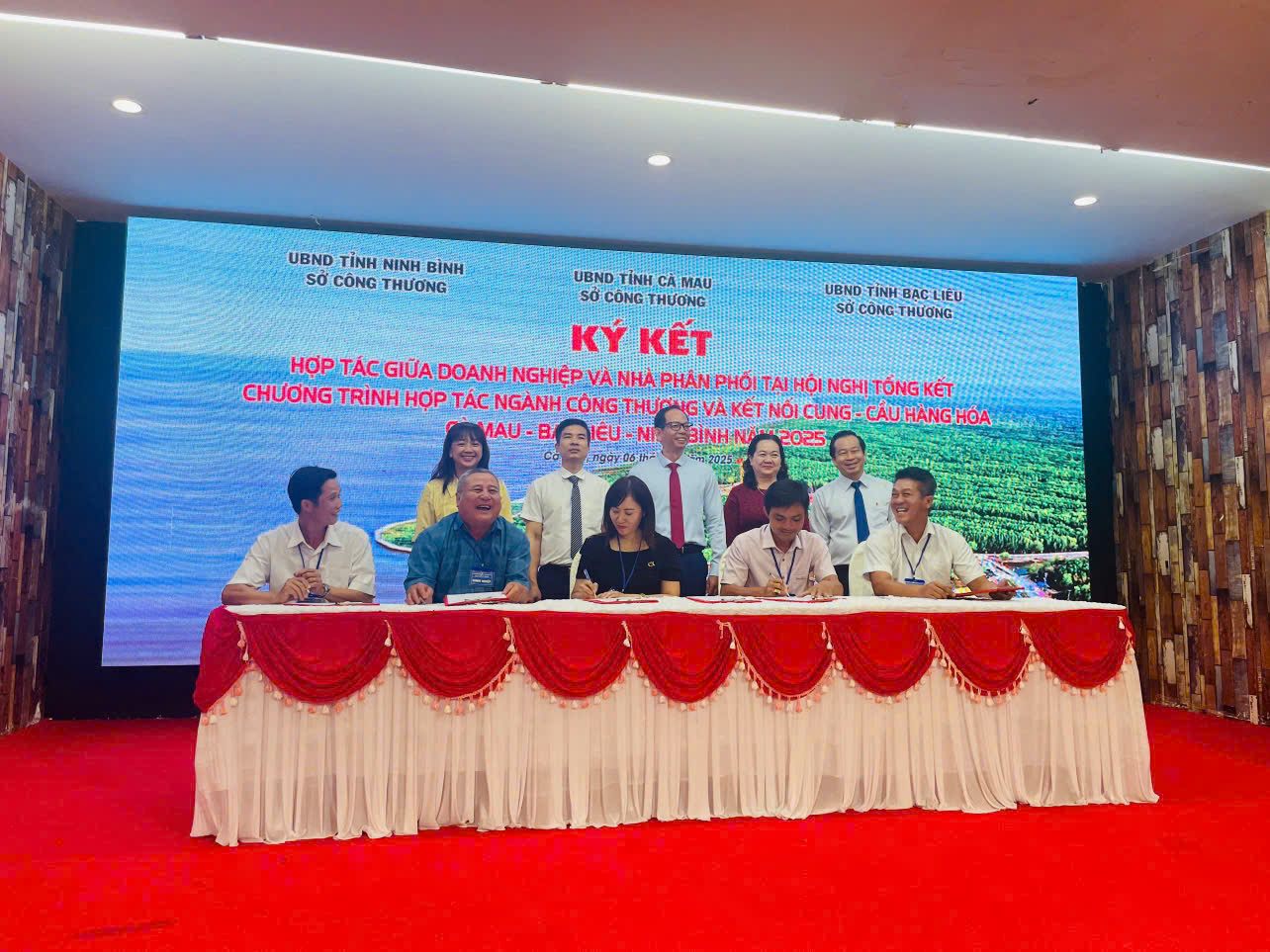 Tại hội nghị, đại diện 06 doanh nghiệp của tỉnh Ninh Bình đã tham gia khu trưng bày sản phẩm như thực phẩm cơm cháy, sản phẩm trà thảo mộc, sản phẩm mắm tép, sản phẩm tinh bột sắn, bột nghệ; sản phẩm gốm Bồ Bát…Trong đó có 04 doanh nghiệp: Công ty TNHH Bảo Sơn Food; Cơ sở mắm tép Thanh Nguyễn; HTX dược liệu Yên Sơn; Công ty TNHH sản xuất và phân phối thực phẩm An Phú đã ký kết biên bản ghi nhớ tiêu thụ sản phẩm hàng hoá với Liên hiệp các hợp tác tỉnh Cà Mau. Công ty TNHH Bảo Sơn Food ký kết biên bản ghi nhớ tiêu thụ sản phẩm hàng hoá với Cơ sở Kiều Hạnh tỉnh Bạc Liêu... Đồng thời, các doanh nghiệp đã trao đổi những thông tin hữu ích, các phản hồi về nhu cầu, các đặc tính, tiêu chuẩn kỹ thuật sản phẩm phù hợp với từng thị trường; giúp các cơ quan chức năng nắm bắt nhanh nhất thông tin thị trường, những khó khăn, vướng mắc của các doanh nghiệp, từ đó tìm biện pháp tháo gỡ, điều tiết thị trường một cách hiệu quả để cung cầu hàng hóa được thông suốt, ổn định an sinh và giá cả. Hội nghị tạo điều kiện khuyến khích các doanh nghiệp địa phương tham gia các chuỗi cung ứng hàng hóa từ khâu sản xuất, phân phối đến tiêu thụ, phục vụ nhu cầu của 3 tỉnh, tạo việc làm cho người dân.