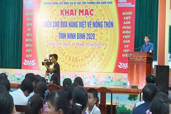 Thực hiện Chương trình cấp Quốc gia về XTTM năm 2020, tối ngày 11/9/2020, Sở Công thương Ninh Bình phối hợp với UBND huyện Kim Sơn chỉ đạo Trung tâm Khuyến công Xúc tiến thương mại và phát triển cụm công nghiệp tổ chức khai mạc phiên chợ đưa hàng việt về nông thôn từ ngày 11/9 đến ngày 13/9/2020 tại nhà văn hóa thị trấn Bình Minh- Huyện Kim Sơn.