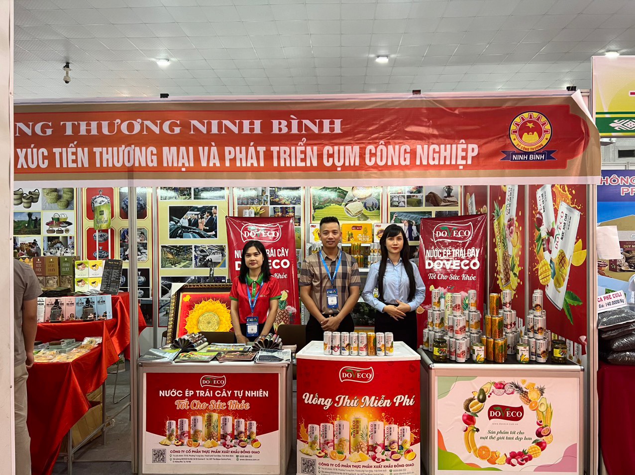 Được sự chỉ đạo của Sở Công Thương, Trung tâm Khuyến công xúc tiến thương mại và phát triển cụm công nghiệp tham gia 02 gian hàng tại Hội chợ với mục đích tuyên truyền, quảng bá giới thiệu các sản phẩm tiêu biểu của tỉnh Ninh Bình. Đồng thời, tạo cơ hội cho các nhà sản xuất có điều kiện trưng bày, giới thiệu sản phẩm từ đó thiết lập mối quan hệ liên doanh, liên kết, thúc đẩy đầu tư, xúc tiến thương mại và chuyển giao công nghệ mới. Gian hàng được trang trí và sắp xếp hợp lý với các sản phẩm đa dạng đặc trưng tiêu biểu của tỉnh Ninh Bình như các sản phẩm Nông sản, đồ uống, thực phẩm đông lạnh, đóng hộp của Công ty TNHH Thương mại và Dịch vụ Đồng Giao Doveco; Các sản phẩm trà thảo dược của Hợp tác xã Sinh Dược, Công ty TNHH dược liệu Vũ Gia, Công ty cổ phần trà Afaco… Với công tác chuẩn bị chu đáo, gian hàng trưng bày đã thu hút được rất nhiều khách thăm quan và đã có nhiều khách mua sản phẩm làm quà lưu niệm. Các sản phẩm hàng hóa mới lạ và đẹp mắt đã được đoàn lãnh đạo của Bộ Công thương và Cục Xúc tiến tham quan đánh giá cao.