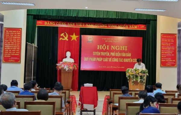 Thực hiện Chương trình khuyến công địa phương năm 2022. Ngày 20/7/2022 tại Hội trường Nhà khách An Bình, Phòng Công nghiệp - Sở Công Thương Ninh Bình phối hợp với Trung tâm khuyến công xúc tiến thương mại và phát triển cụm công nghiệp Ninh Bình tổ chức: “Hội nghị tuyên truyền, phổ biến văn bản quy phạm pháp luật về công tác khuyến công”.