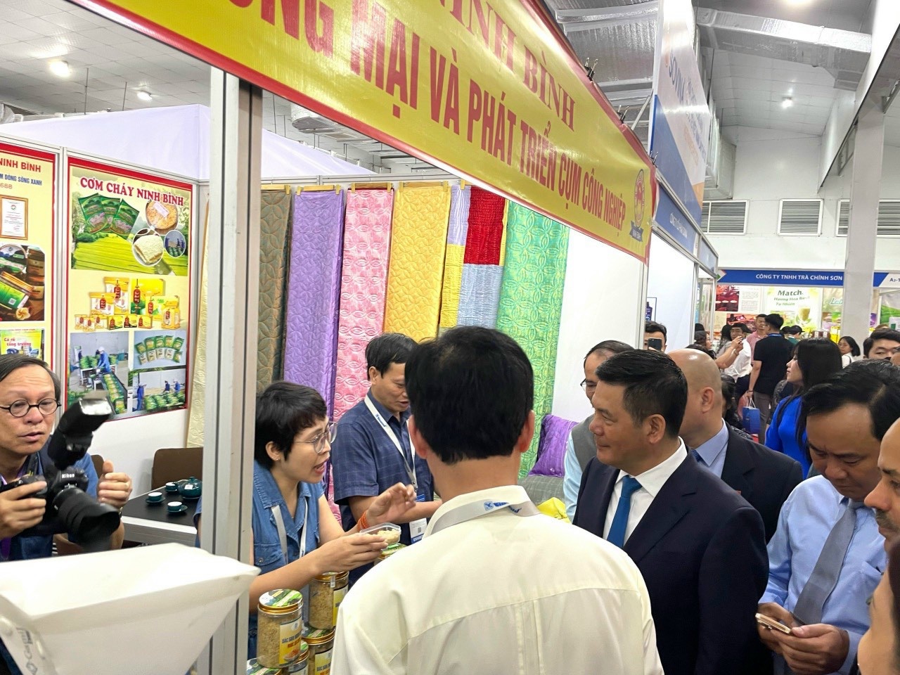 Được sự chỉ đạo của Sở Công Thương, Trung tâm Khuyến công xúc tiến thương mại và phát triển cụm công nghiệp tham gia 02 gian hàng tại Hội chợ với mục đích tuyên truyền, quảng bá giới thiệu các sản phẩm tiêu biểu của tỉnh Ninh Bình. Đồng thời, tạo cơ hội cho các nhà sản xuất có điều kiện trưng bày, giới thiệu sản phẩm từ đó thiết lập mối quan hệ liên doanh, liên kết, thúc đẩy đầu tư, xúc tiến thương mại và chuyển giao công nghệ mới. Gian hàng được trang trí và sắp xếp hợp lý với các sản phẩm đa dạng đặc trưng tiêu biểu của tỉnh Ninh Bình như các sản Ruốc cá của Công ty TNHH Thương mại và chế biến Dòng Sông Xanh; sản phẩm gốm sứ bồ bát của Công ty TNHH bảo tồn và phát triển gốm Bồ Bát; Các sản phẩm chăn ga gối, đệm của Công ty TNHH Nam Thoa… Với công tác chuẩn bị chu đáo, gian hàng trưng bày đã thu hút được rất nhiều khách thăm quan và đã có nhiều khách mua sản phẩm làm quà lưu niệm. Các sản phẩm hàng hóa mới lạ và đẹp mắt đã được đoàn lãnh đạo của Bộ Công thương và Cục Xúc tiến tham quan đánh giá cao.