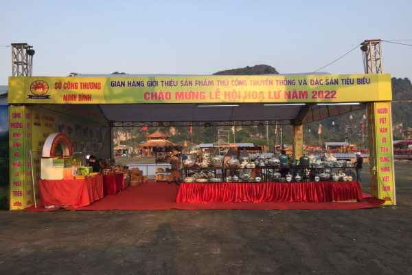 Thực hiện Kế hoạch số 156/KH-UBND ngày 05/10/2021 của UBND tỉnh Ninh Bình về việc tổ chức lễ hội Hoa Lư năm 2022. Dưới sự lãnh đạo của Sở Công thương Ninh Bình, Trung tâm Khuyến công Xúc tiến thương mại và Phát triển cụm công nghiệp Ninh Bình đã tham gia trưng bày giới thiệu các sản phẩm thủ công mỹ nghệ và đặc sản tiêu biểu của tỉnh Ninh Bình trong thời gian ngày 08/4/2022 đến ngày 11/4/2022 tại sân lễ hội Hoa Lư.