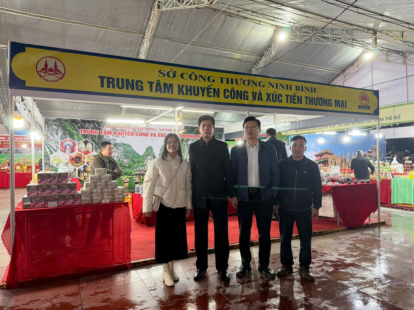 Trong khuôn khổ hội chợ, gian hàng tỉnh Ninh Bình vinh dự đón tiếp Đồng chí Vũ Đức Duy - Phó Vụ trưởng Vụ Dầu khí và Than (Bộ Công thương) đến tham quan và tìm hiểu sản phẩm. Tại đây, Phó Vụ trưởng đã nghe Trung tâm giới thiệu về các nhóm sản phẩm tiêu biểu, đặc sắc của tỉnh. Lãnh đạo Bộ đánh giá cao chất lượng sản phẩm, cách bố trí trưng bày cũng như những nỗ lực của Ninh Bình trong công tác xúc tiến thương mại, quảng bá sản phẩm địa phương ra thị trường. Chuyến thăm là sự ghi nhận quan trọng, đồng thời tạo động lực để doanh nghiệp và cơ sở sản xuất trong tỉnh tiếp tục đổi mới, nâng cao chất lượng và mở rộng thị trường tiêu thụ.