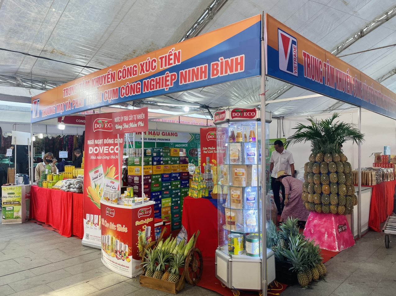 Trung tâm Khuyến công Xúc tiến thương mại & Phát triển cụm công nghiệp Ninh Bình tham gia 02 gian hàng. Nhằm mục đích giới thiệu các sản phẩm đặc trưng của tỉnh như: sản phẩm đóng hộp của Công ty CP thực phẩm xuất khẩu Đồng Giao, sản phẩm muối ngâm chân của Hợp tác xã Sinh Dược; Sản phẩm trà thảo mộc của Công ty CP dược phẩm Quốc tế Anpharco; Sản phẩm ruốc cá rô của Công ty TNHH thương mại chế biến thực phẩm Dòng Sông Xanh... Các sản phẩm trưng bày tại gian hàng đã thu hút được sự quan tâm của đông đảo người dân đến thăm quan mua sắm.