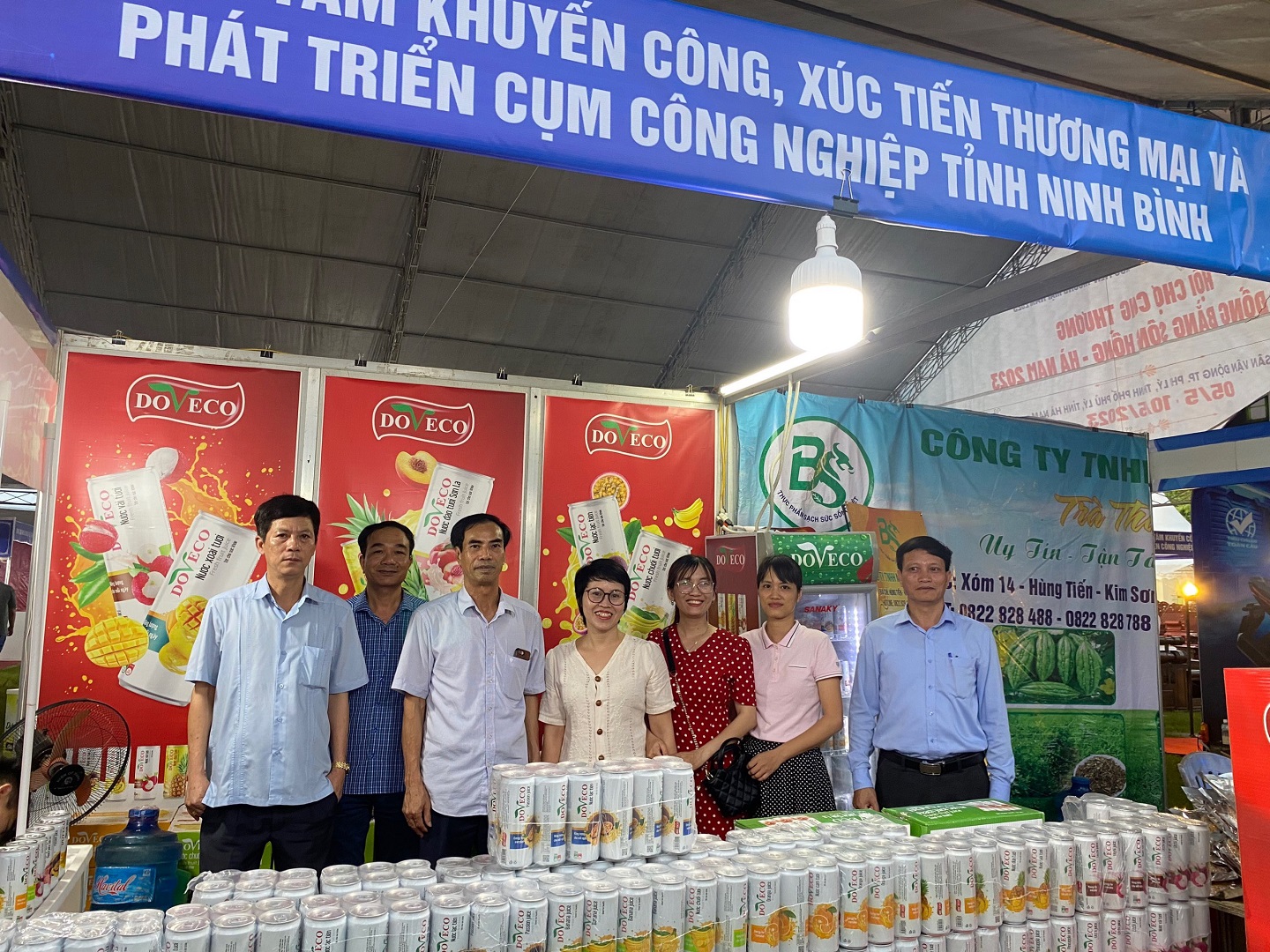 Được sự chỉ đạo của Sở Công Thương, Trung tâm Khuyến công xúc tiến thương mại và phát triển cụm công nghiệp tham gia 02 gian hàng tại Hội chợ với mục đích tuyên truyền, quảng bá giới thiệu các sản phẩm tiêu biểu của tỉnh Ninh Bình. Đồng thời, tạo cơ hội cho các nhà sản xuất có điều kiện trưng bày, giới thiệu sản phẩm từ đó thiết lập mối quan hệ liên doanh, liên kết, thúc đẩy đầu tư, xúc tiến thương mại và chuyển giao công nghệ mới. Gian hàng được trang trí và sắp xếp hợp lý với các sản phẩm đa dạng đặc trưng tiêu biểu của tỉnh Ninh Bình như các sản phẩm Nông sản, đồ uống, thực phẩm đông lạnh, đóng hộp của Công ty TNHH Thương mại và Dịch vụ Đồng Giao Doveco; các sản phẩm trà thảo mộc của Công ty cổ phần trà Afaco, Công ty TNHH MTV Bảo Sơn Food, sản phẩm cơm cháy chà bông Cung Đình của Công ty TNHH sản xuất và phân phối thực phẩm An Phú… Với công tác chuẩn bị chu đáo, gian hàng trưng bày đã thu hút được rất nhiều khách thăm quan và đã có nhiều khách mua sản phẩm làm quà lưu niệm.